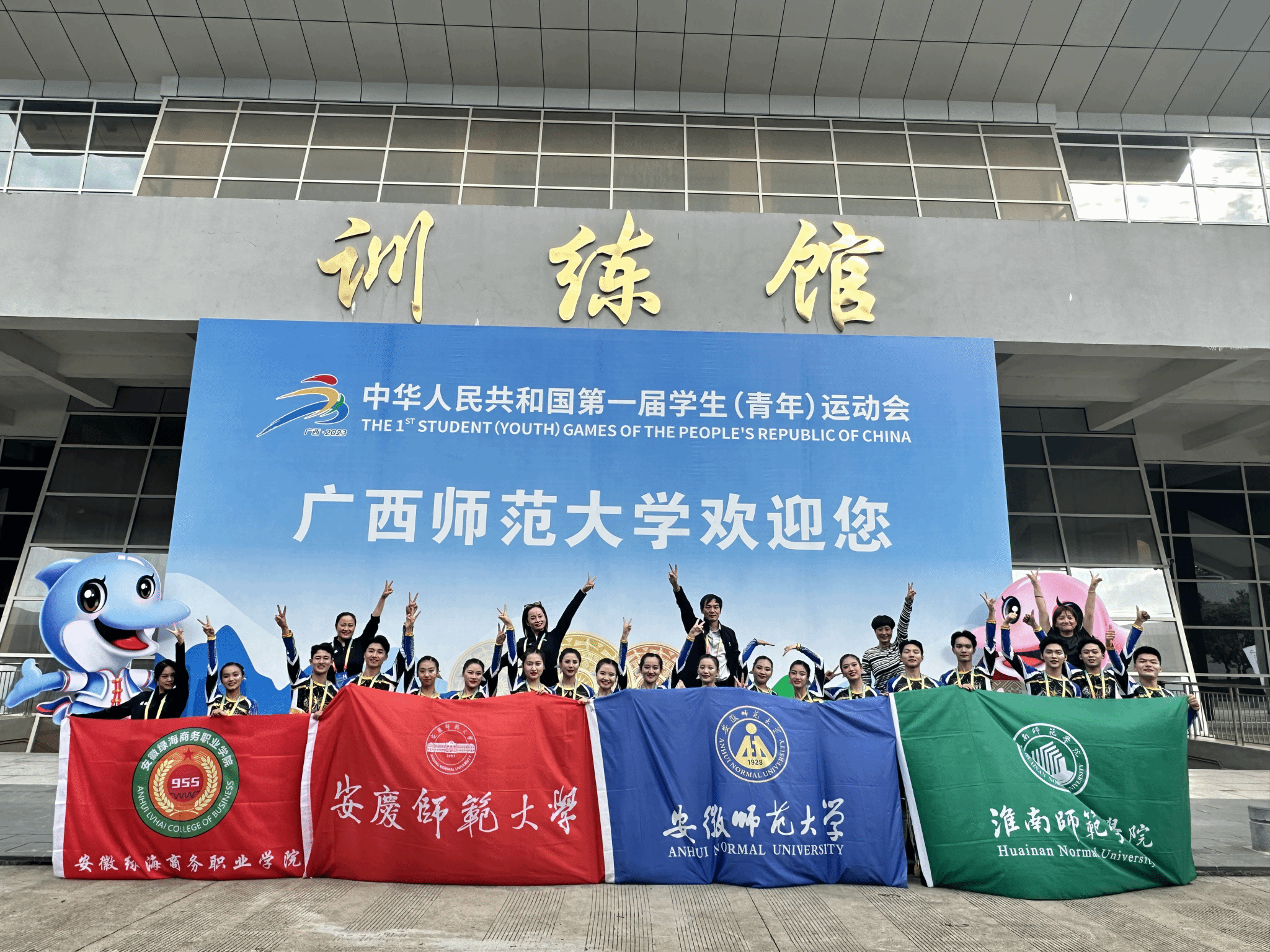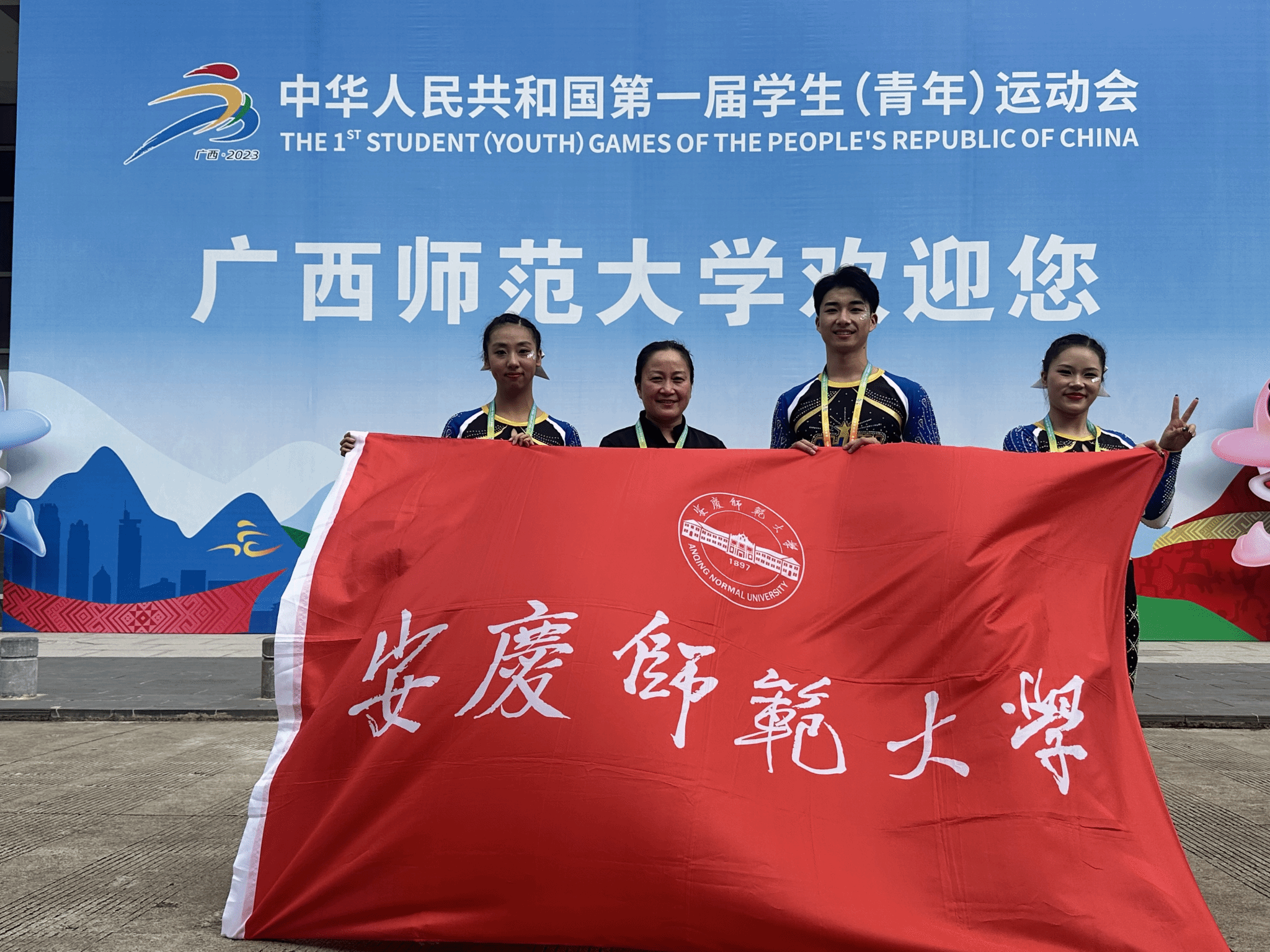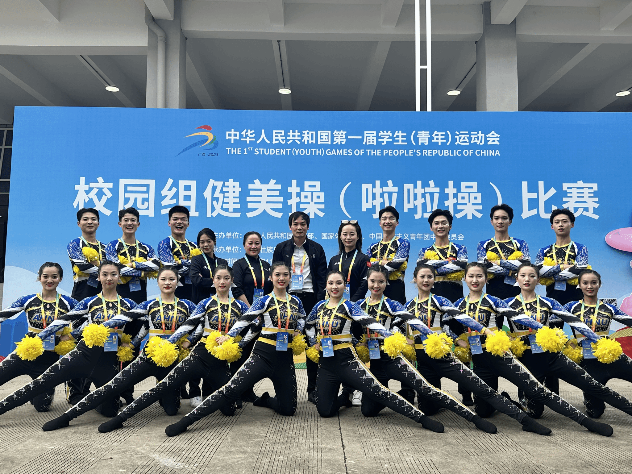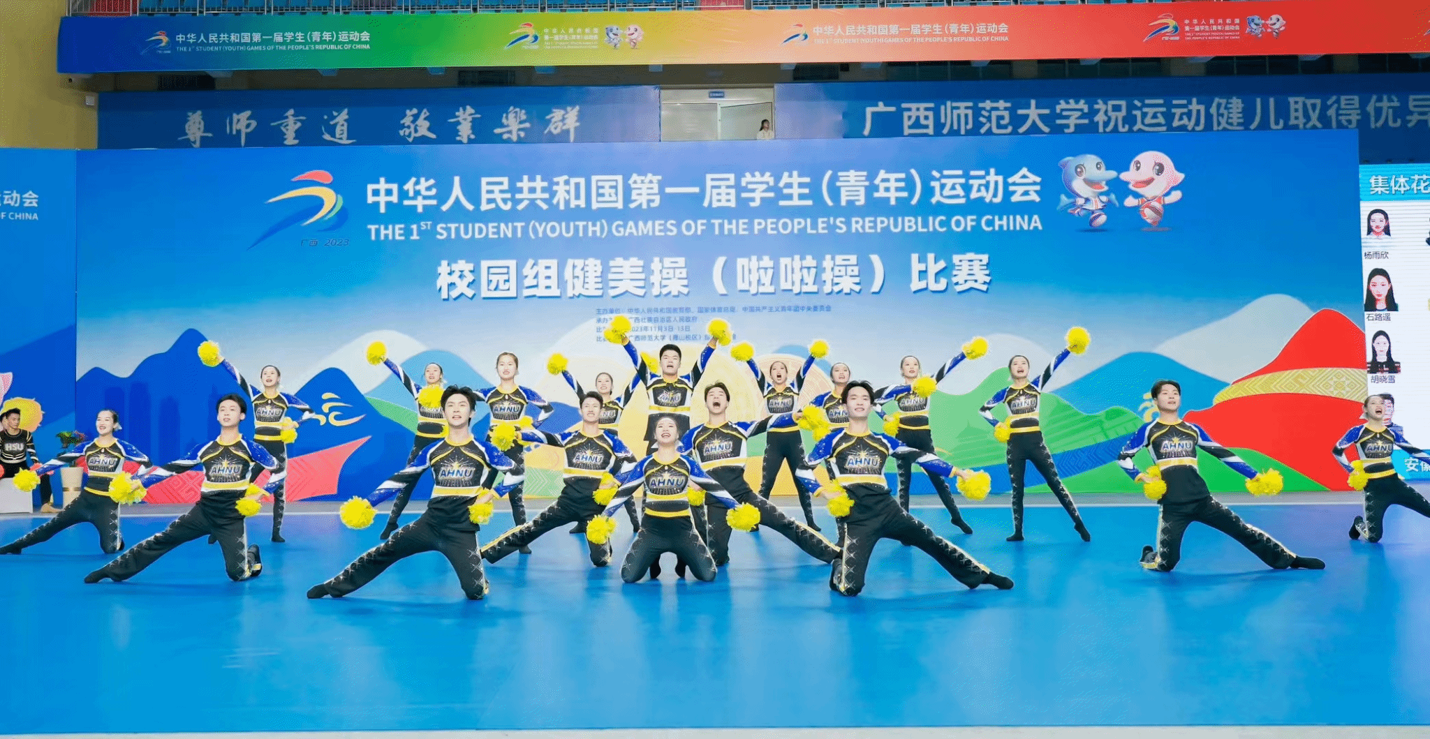 11月5日至7日,第一届全国学生(青年)运动会大学组啦啦操项目决赛在广西师范大学(雁山校区)综合体育馆成功落下帷幕。sunbet申博体育表演专业胡晓雪、余钦哲、马雨萌同学在教练员潮芳老师的指导下,入选安徽省队,代表安徽省出战第一届全国学生(青年)运动会大学组啦啦操项目的比赛。经过预赛选拔,sunbet申博选手以全国前12的成绩顺利晋级11月举行的项目决赛,最终,sunbet申博健儿携手兄弟院校队员,努力拼搏,跻身全国八强,实现了安徽省操舞类项目在教育部主办的全国大赛中零的突破。