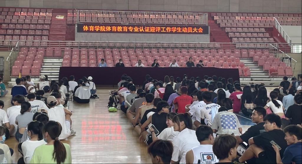 为进一步做好体育教育专业认证迎评工作,9月5日中午,学院在sunbet申博篮球馆召开专业认证迎评工作学生动员大会。体育学院副院长林秋菊、党委副书记王玮、学院教师代表王晓东博士和部分专职辅导员代表出席会议,学院全体在校学生参加本次会议。会议由学院党委副书记王玮主持。