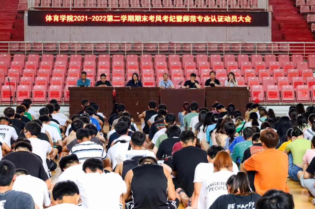 5月30日中午,sunbet申博在体育馆篮球馆召开2021-2022学年第二学期期末考试考风考纪暨师范专业认证动员大会。副院长林秋菊、教学办主任和辅导员老师出席会议,全体研究生、本科生参加会议。党委副书记高栋梁主持会议。